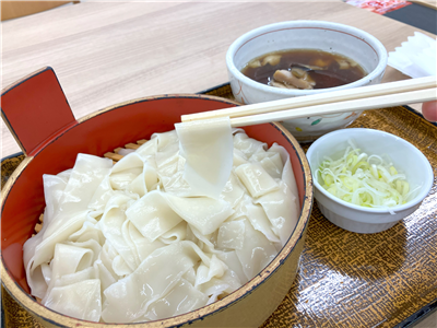 ほうとうの麺を出汁につけて食べる逸品。