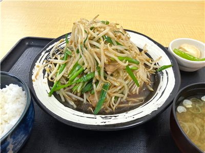 シャッキシャキのもやしがたっぷり!大満足の定食。 -