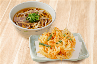 桜海老と3種類の野菜のかき揚げと、喉ごしの良い山芋そばを使用した店長おすすめの逸品です。