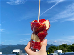 駒ヶ岳SA上り限定!信州産りんごのりんご飴♪ 信州産りんごを使ったりんご飴を販売しております。パリパリサクサクジューシー♪