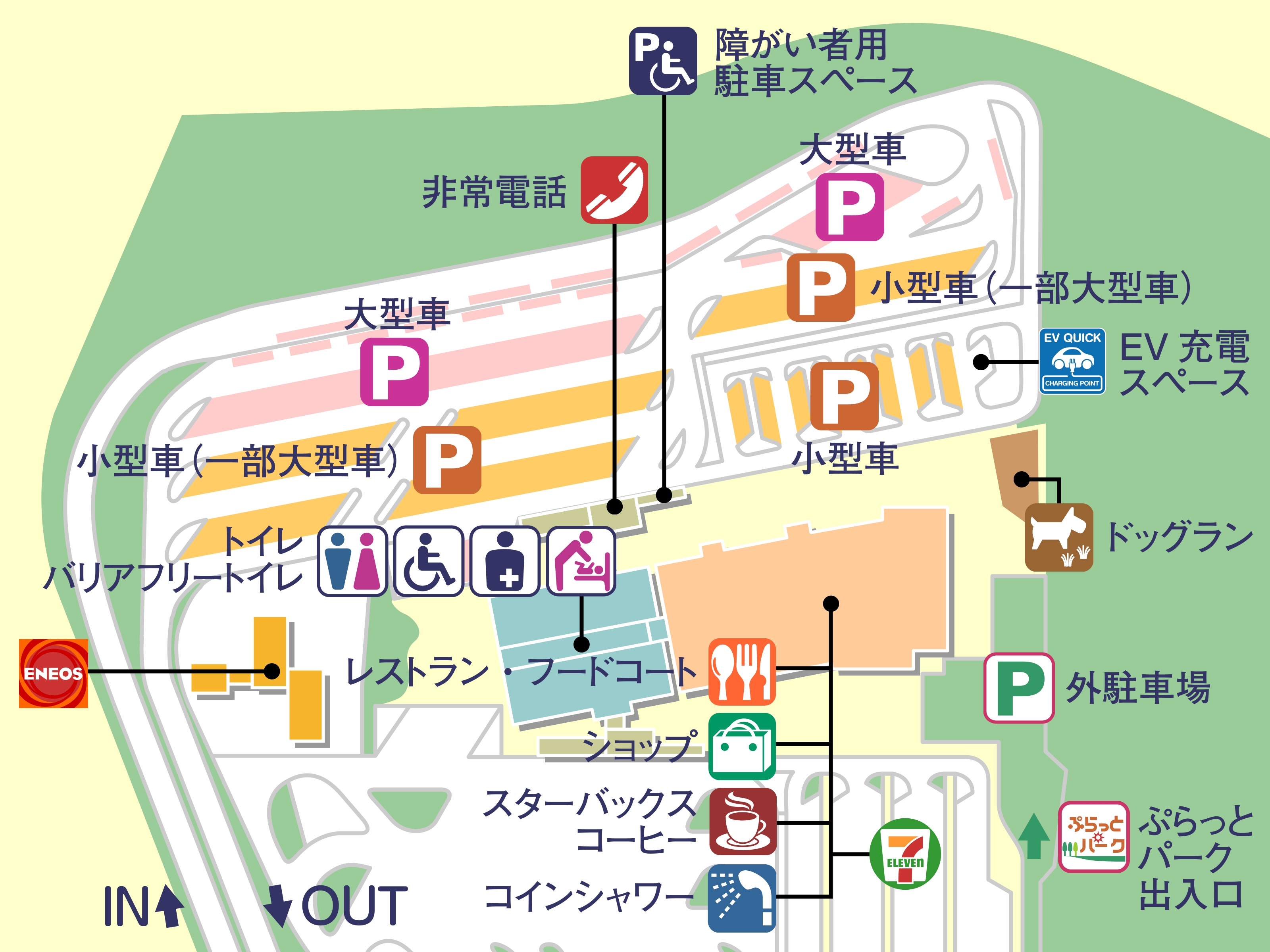 駐車場大型:1/駐車場小型:3/トイレ:2